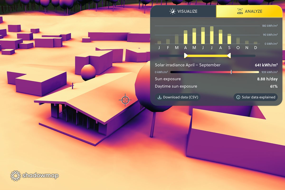 Shadowmap goes beyond visual shadows with its unique 3D solar analytics approach: